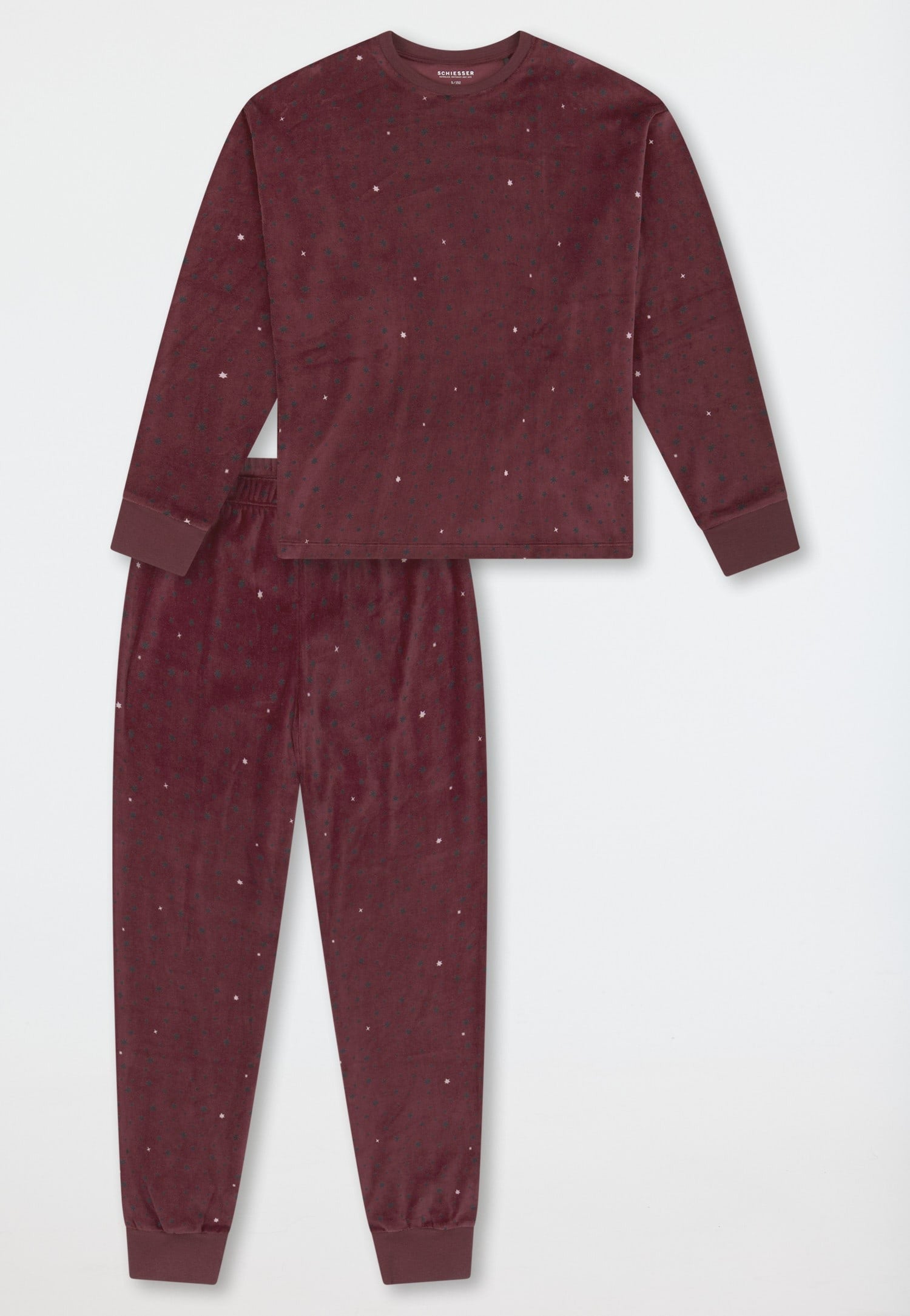 Schiesser Pyjamas long velour cuffs stars burgundy - Teens Nightwear