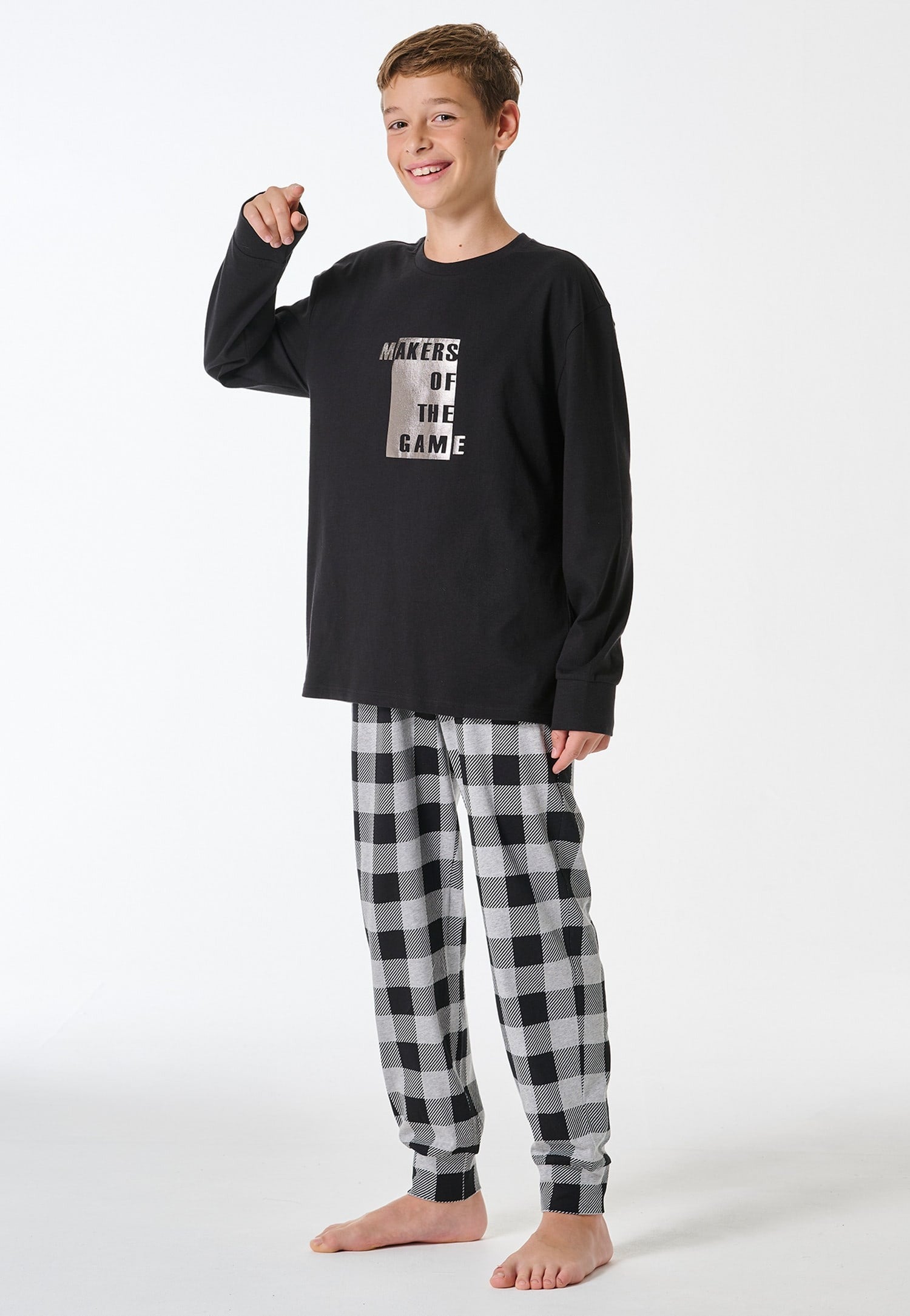 Schiesser Long pyjamas checkered black - Teens Nightwear