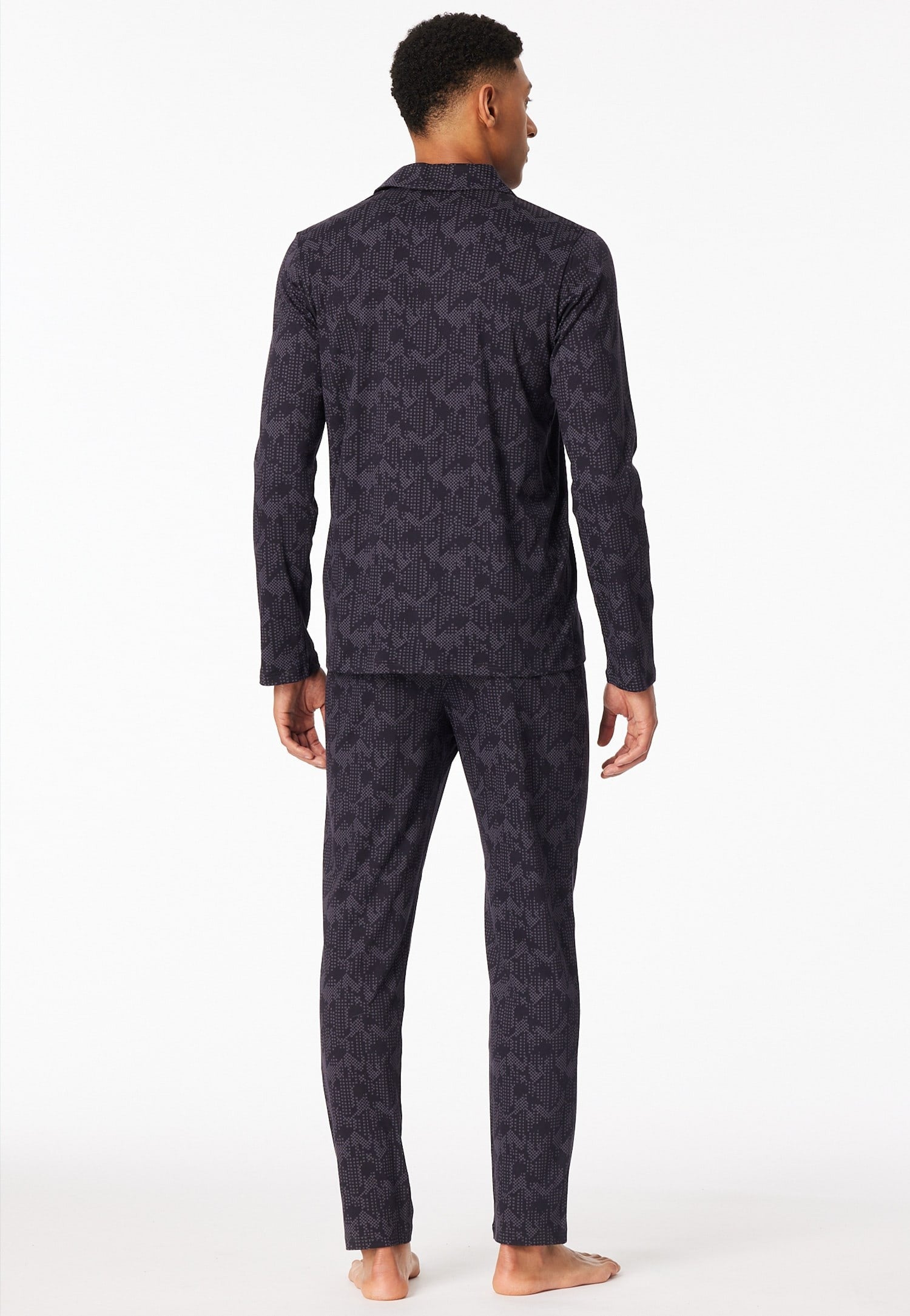 Schiesser Pyjamas long Interlock coal patterned - Fine Interlock