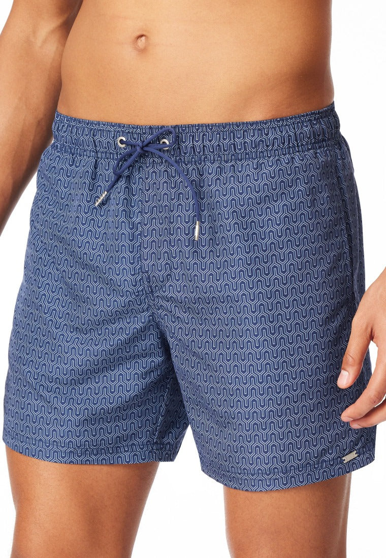 Schiesser Swim trunks woven fabric navy patterned - Aqua