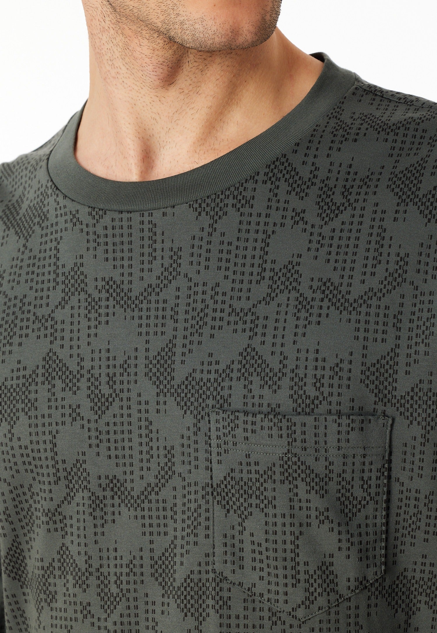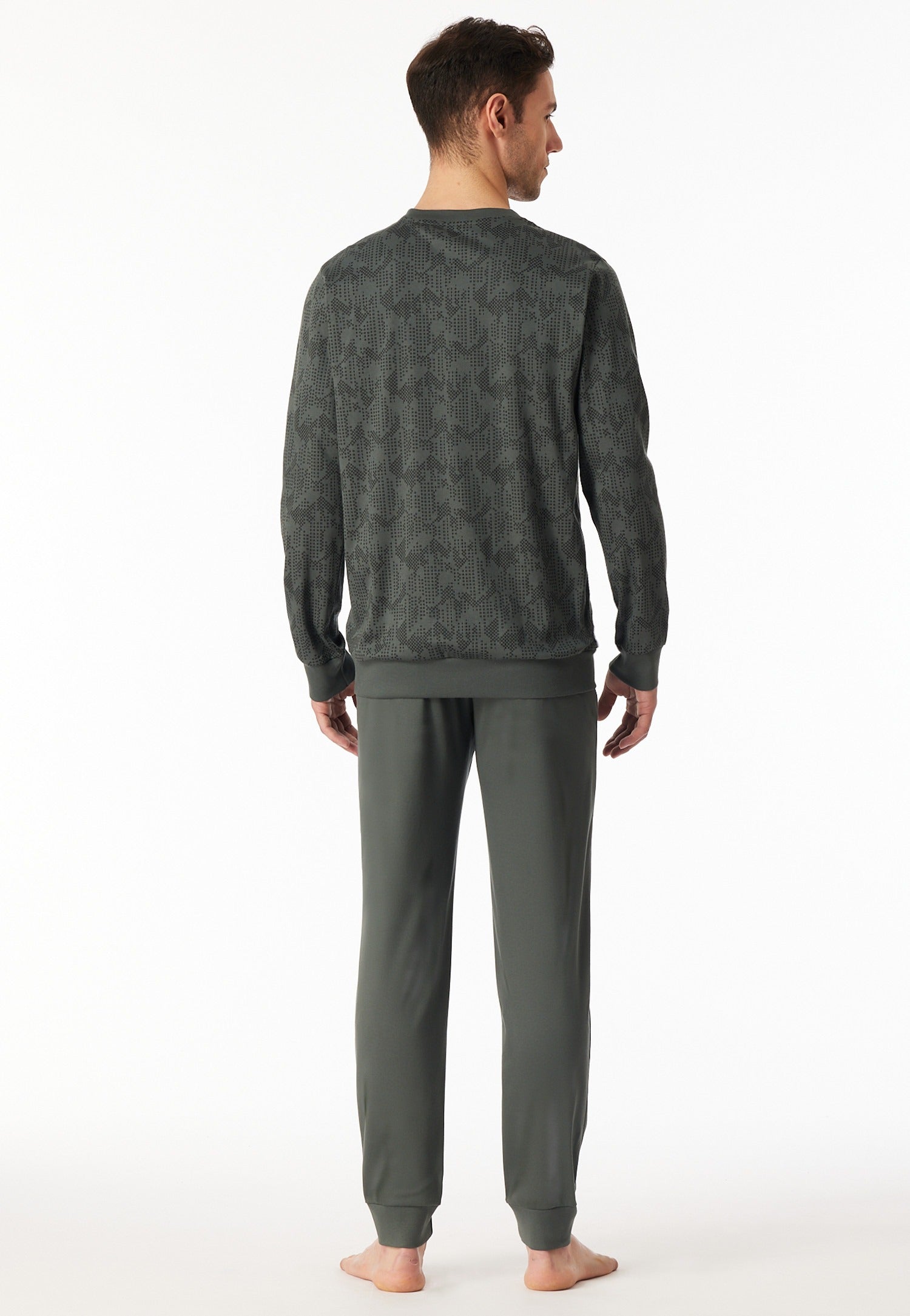 Schiesser Pyjamas long Interlock cuffs dark green patterned - Fine Interlock